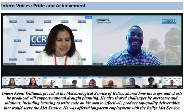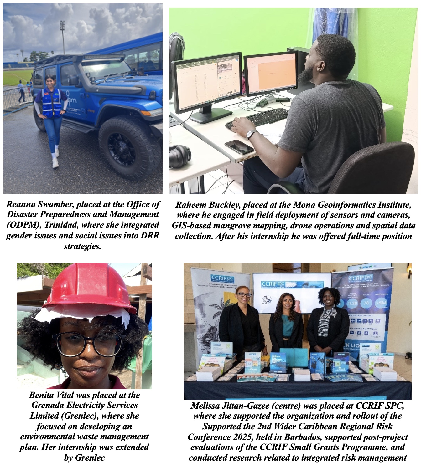 Several interns secured full-time employment or extended assignments, including Raheem Buckley (Mona Geoinformatics Institute at The UWI), Donel McMaster (Anguilla Department of Disaster Management), Benita Vital (Grenlec – Grenada Electric Services Limited), and Adria Leben (Caribbean Institute for Meteorology and Hydrology). Others were retained for additional projects or earmarked for future roles.